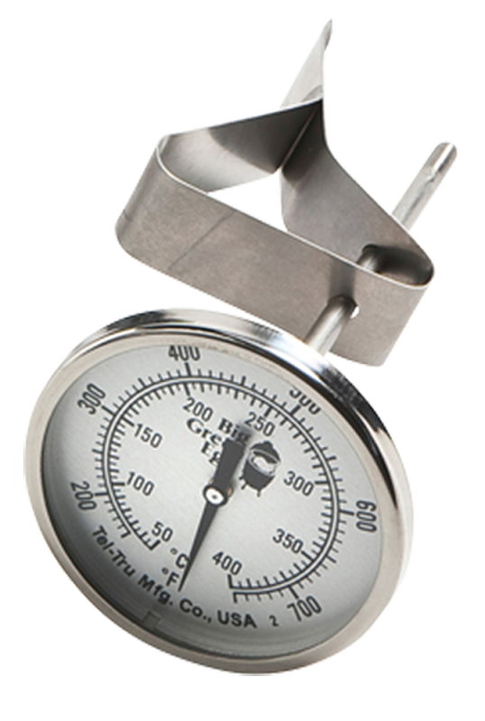 Tous les Big Green Egg sont livrés avec un thermomètre d'origine maissi, après des années d'utilisation, celui-ci venait à rendre l'âme, vouspouvez commander le thermomètre Tel-Tru® en remplacement. Placezle thermomètre dans le dôme de l'EGG et vous voici de nouveau enmesure de connaître la température intérieure sans avoir à ouvrir lecouvercle et risquer de perdre de la chaleur. Disponible en 2 formatsdifférents, le thermomètre Tel-Tru® est conçu pour mesurer destempératures comprises entre 50 et 400° C.