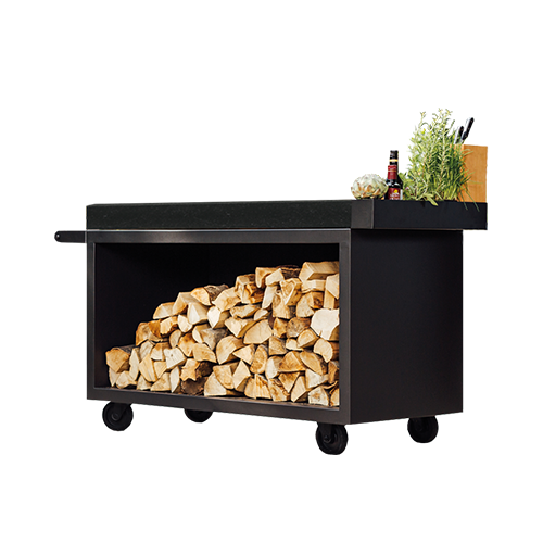 La Table Mise en Place Pro est un modèle plus grand et plus mobile encore que le Butcher Block 135. La table peut être utilisée sur tous types de surfaces pavées. Elle comprend une solide planche en bois, idéale pour préparer ses plats, un bac de rangement pour les accessoires ainsi quun espace de stockage pour le bois. Avec une dimension de 135 x 65 cm, cest un large espace de travail. Le plan de travail est disponible en bois de teck, et en céramique de couleur gris anthracite. Après utilisation, il est recommandé de placer le plan de travail en bois de teck à lintérieur tandis que le plan de travail en céramique peut rester à lextérieur, toute lannée.