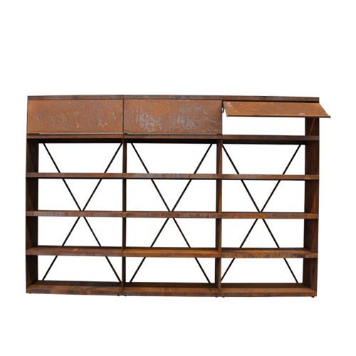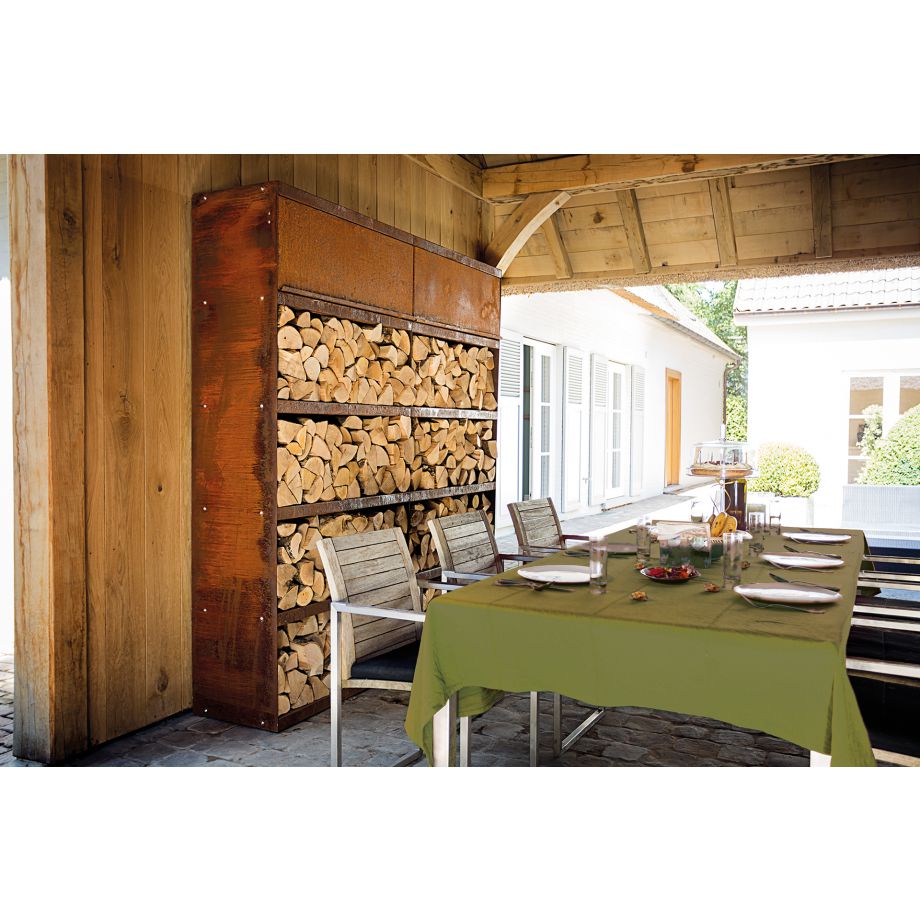 Ces grandes armoires en acier Corten transforment une pile de bois en un mur design et fonctionnel. Létagère supérieure à charnières vous permet de ranger vos outils et autres articles et de les converser soigneusement à labri. Elles existent en trois tailles ce qui permet de trouver une solution pour chaque espace car on peut les lier entre elles, à linfini. Disponibles en 216 x 100 cm, 216 x 200 cm et 216 x 300 cm.