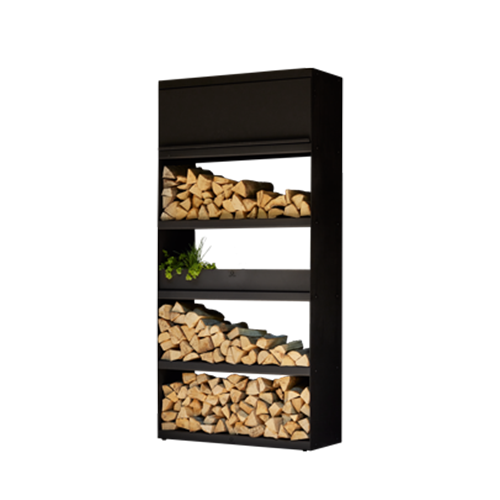 Ces grandes armoires transforment une pile de bois en un mur design et fonctionnel. Létagère supérieure à charnières vous permet de ranger vos outils et autres articles et de les converser soigneusement à labri. Elles existent en deux tailles ce qui permet de trouver une solution pour chaque espace car on peut les lier entre elles, à linfini. Disponibles en 216 x 100 cm, 216 x 200 cm.