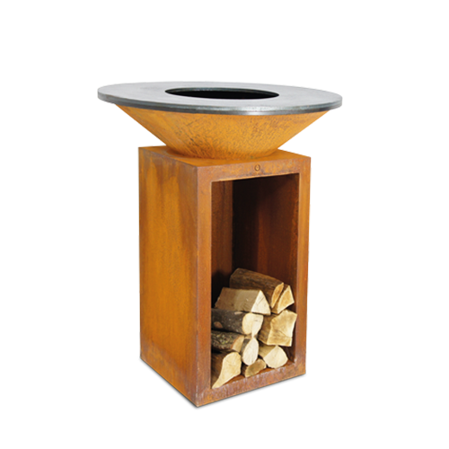 Ce modèle reprend tout le style et la simplicité de OFYR, avec le confort d'un rangement pour le bois en supplément.Ce modèle existe en taille 85 et 100 cm et se combine parfaitement à d'autres meubles OFYR tels que les Butcher Block.