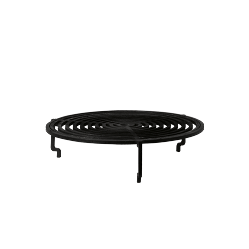 La grille OFYR permet une cuisson sur le feu de vos aliments. Elle est composée de 2 éléments : la grille et le trépied, et se place au centre de la plaque. Cet espace additionnel de cuisson est surélevé afin de pouvoir insérer facilement les bûches dans la vasque, pendant la cuisson. Ce modèle de grille est disponible pour les modèles 85 et 100.