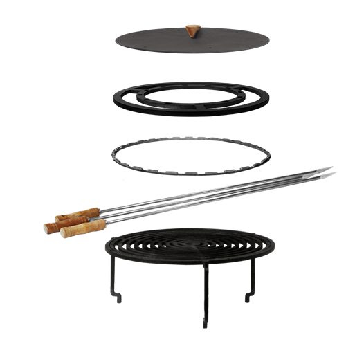 Concernant la cuisson, pour plus de choix et de polyvalence, nous avons créé le Set Grill Accessoires OFYR XL. Le set « Standard » comprend la grille XL, lAnneau Brochette Horizontal et les brochettes 105. Le set « PRO » comprend les accessoires du set « Standard » ainsi que lAnneau Brazil et létouffoir XL.