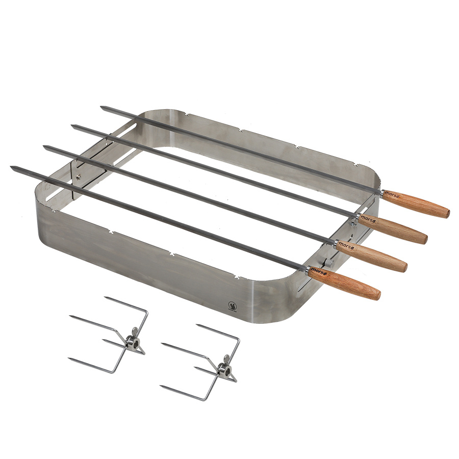 Churrasco barbecue set frame en inox, 4 piques, 2 griffes