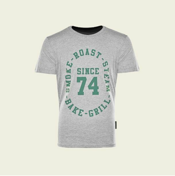 Êtes-vous le chef aujourd'hui? C'est immédiatement clair avec cet élégant T-shirt gris clair. Grâce à l'imprimé vert foncé "Since" 74 "sur le devant, en lettres rétro, vous rendez visible toutes vos compétences:" Smoke, Roast, Steam, Bake, Grill ". Ce sera délicieux! Les extras spéciaux sont le passepoil vert foncé assorti à l'intérieur du col de la chemise et le texte vert foncé "Big Green Egg" en minuscules sur le haut du dos. Caractéristiques: Couleur: gris clair avec des lettres vert foncé Matériel: 70% coton / 30% polyester