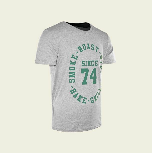 Êtes-vous le chef aujourd'hui? C'est immédiatement clair avec cet élégant T-shirt gris clair. Grâce à l'imprimé vert foncé "Since" 74 "sur le devant, en lettres rétro, vous rendez visible toutes vos compétences:" Smoke, Roast, Steam, Bake, Grill ". Ce sera délicieux! Les extras spéciaux sont le passepoil vert foncé assorti à l'intérieur du col de la chemise et le texte vert foncé "Big Green Egg" en minuscules sur le haut du dos. Caractéristiques: Couleur: gris clair avec des lettres vert foncé Matériel: 70% coton / 30% polyester