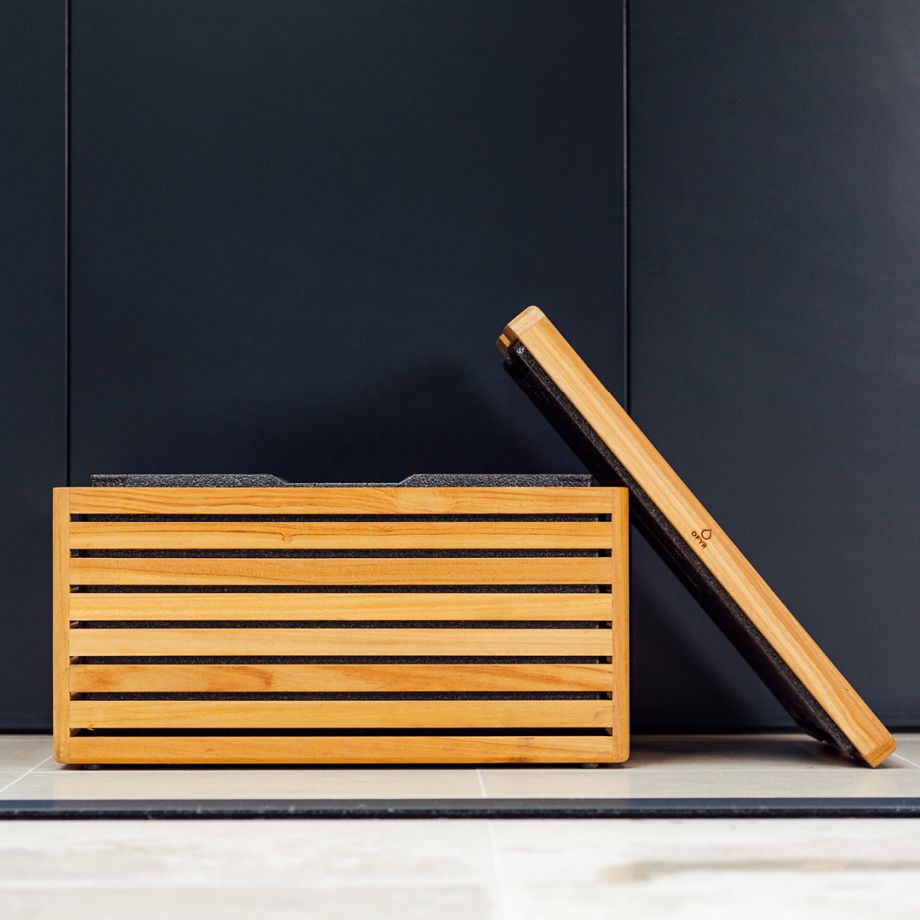Lorsque vous cuisinez pour un événement ou faites la restauration pour un grand groupe, il est utile d'avoir une glacière à portée de main. L'OFYR Cooler est fabriqué en teck et en polystyrène, pour rendre la glacière légère et facile à déplacer. En plus de son apparence chic, la glacière a l'avantage de pouvoir être utilisée comme siège.