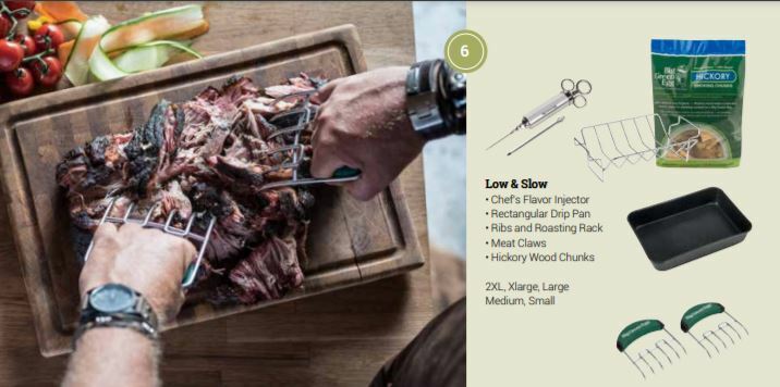 - Chef's Flavor Injector - Rectangular Drip Pan - Ribs and Roasting Rack - Meat Claws - Hickory Wood Chunks